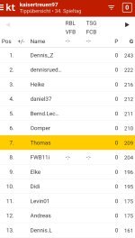 Servus , der letzte Bundesliga Spieltag steht am Wochenende an . Wer wird der neue Tipp-Champion der Kaisertreuen , Also ,Dennis Z. hat 21 Punkte Vorsprung auf den zweiten Dennis R. , damit sollte er zu 99 % Wahrscheinlichkeit Sieger 2025 werden. Aber , wer wird Zweiter bzw. Dritter beim Tipp-Spiel ?